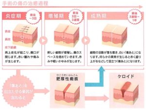 町野皮ふ科は手術後のキズをキレイにするために色々心掛けています。