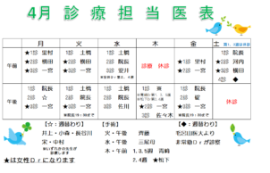 4月から水曜日の午後が3診体制となります!担当医表・・・