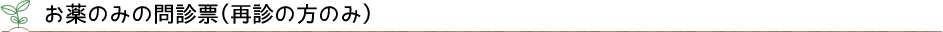 往診の方は「初診(保険診療のみ)の問診票」「再診(保険診療のみ)の問診票」は不要です。往診をご希望される方、ご家族の方、施設の方はこちらをご記入しあらかじめFAXしてください。他に必要な書類もありますので、詳しくは往診についてを参照してください。