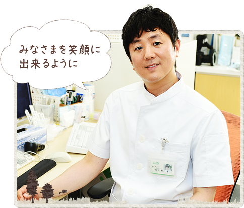 患者さんのために何ができるかを常に考えている院長です。治療のことはもちろん、待ち時間をすくなくするためにはどうしたら良いのかなども真剣に考えています。スタッフの私達にも、愛情をもって接してくれます。そんな院長をスタッフ一同、尊敬しています。